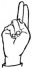 На ћирилици написано РАДЕ ШЋЕЛОВИЋ састоји се из 12 слова [?]. Исписано ћириличном једноручном азбуком за глувонеме: